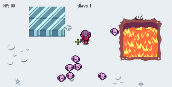 During the regular waves banished souls (in the form of skulls) will spawn. Fend them off and push (or throw) their corpses into the central incinerator/lava hole to fill it up.